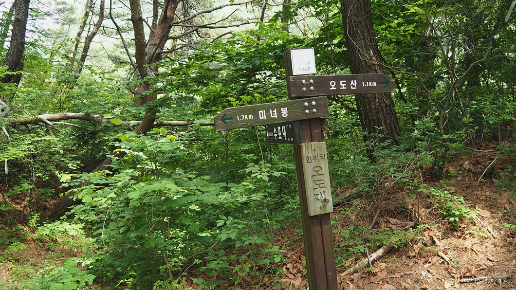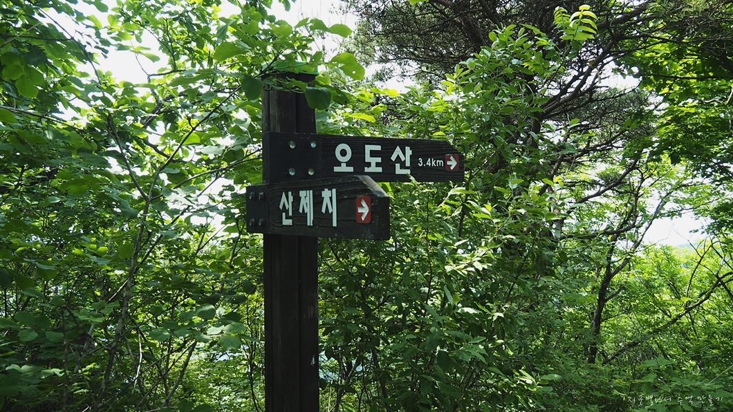 도로까지 내려와서 조금 더 진행하면 우측으로 오도재와 미인봉으로 진행하는 산길이 있습니다.