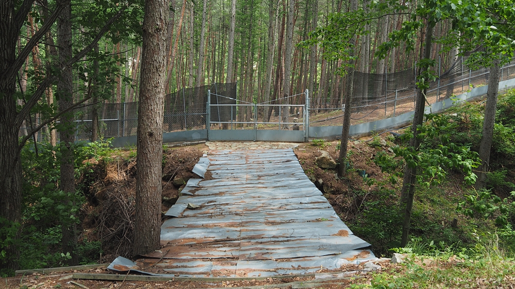 중간에 수령이 제법 있는 소나무 숲이 있는데 울타리가 쳐져 있네요.