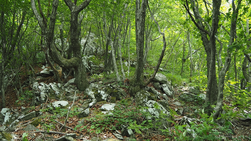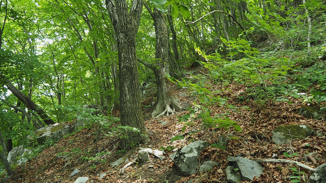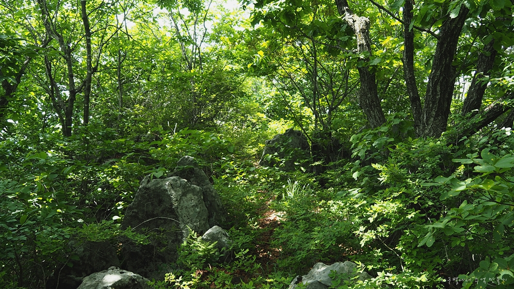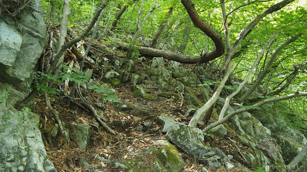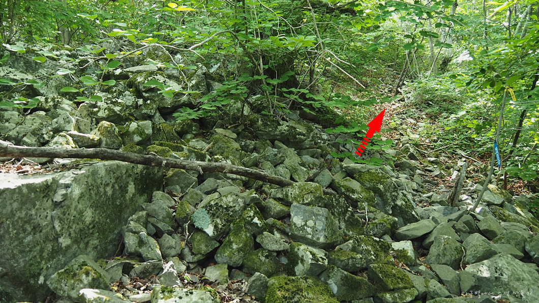 중간쯤에서 등산로가 너덜을 따라 오르게 되어 있는데 산길에서 너덜을 만나는 등산로는 알바하기 딱 좋은데 이곳 너덜길은 끝까지 따라 오르면 됩니다.