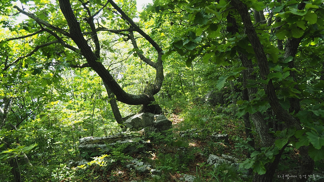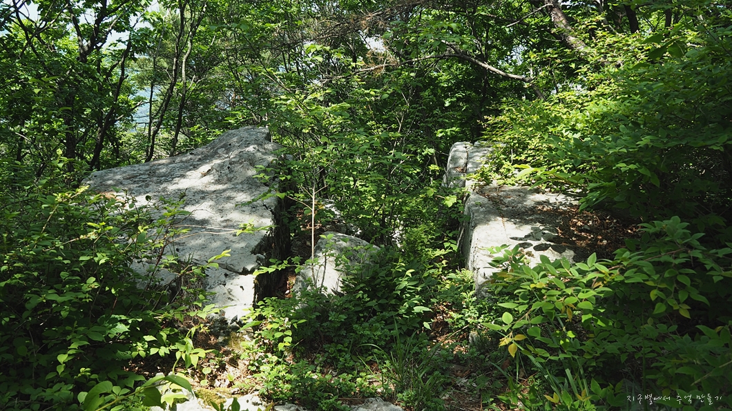 북쪽 방향으로 약 10m 정도 이동하면 약간 솟아오른 바위가 있는데 이곳에서 조망을 즐길 수 있구요.