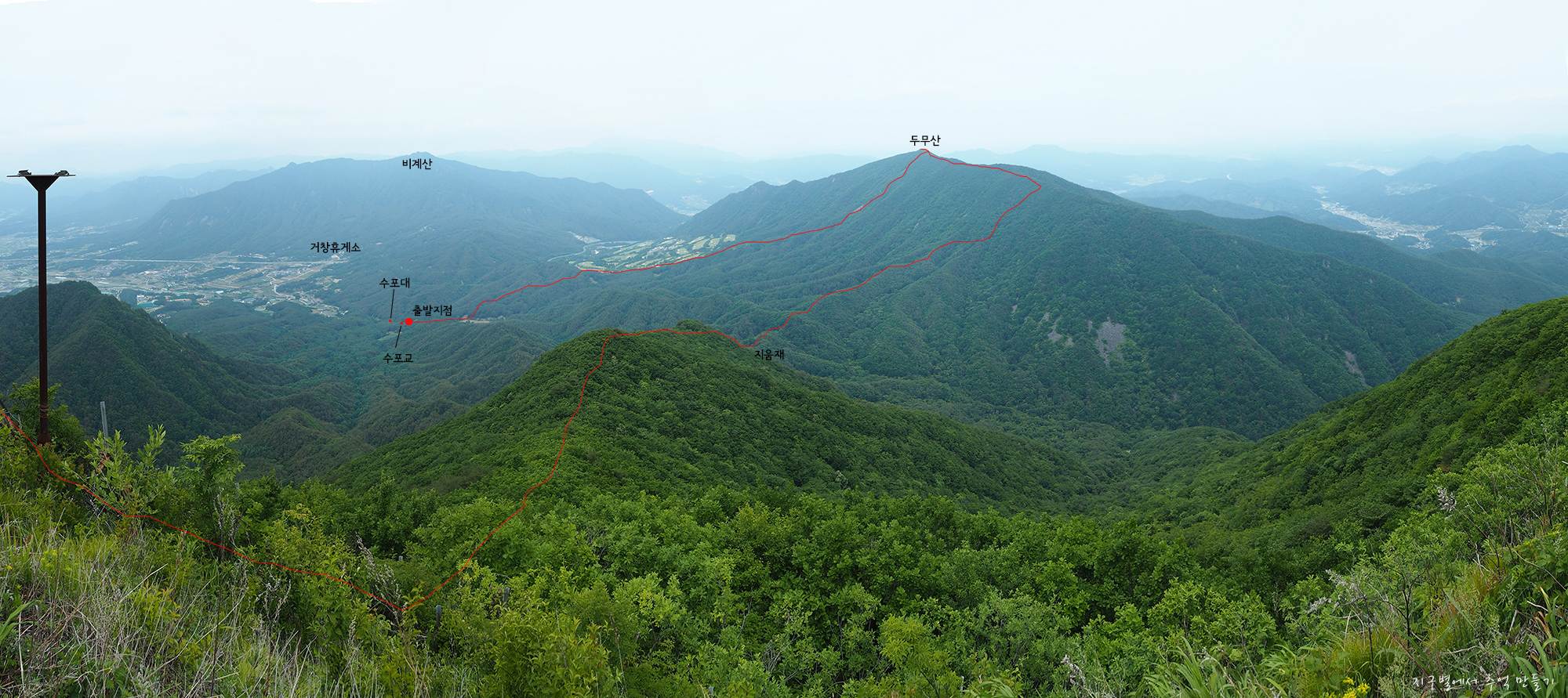 오늘 산행은 거창 양지마을 깊숙히 자리한 수포대를 들머리로 하여 두무산에 오른 다음 건너편 오도산 연계산행을 하고 오도재를 거쳐 수포대로 내려오는 원점회귀 코스입니다.