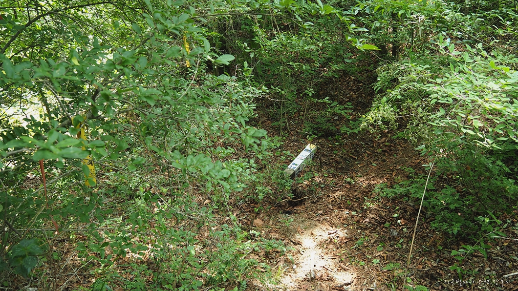 등산로가 뚜렷이 보이지 않는데 약 1분 정도만 치고 오르면 능선의 등산로와 만나게 되니 아무곳으로나 오르면 됩니다.