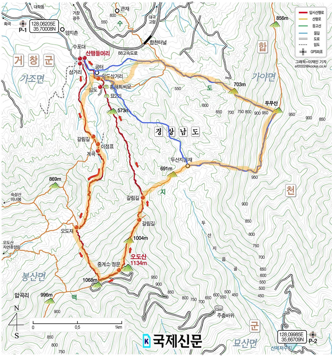 두무산 오도산 등산지도