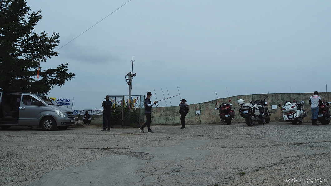 정상에는 재난통신지원단이라 하여 아마추어무선 동호회 분들이 올라와서 간이 안테나 들고 수신 잡기에 애를 쓰고 있고,이 외에도 오빠야들 타고 온 대형 오토바리가 여러대 있네요.