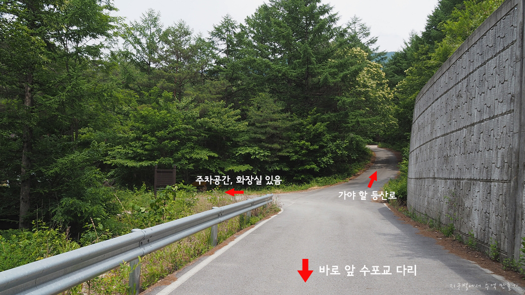 바로 우측이 수포교 다리이고 그곳 지나 조금 더 오르면 차를 세워 둔 공터가 있습니다.