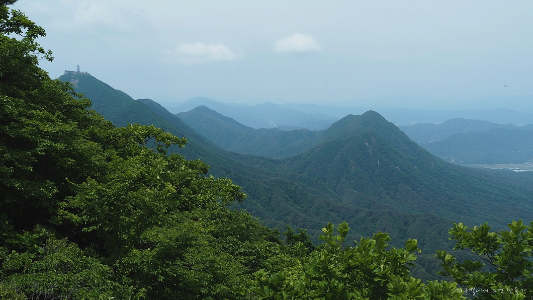 정상에서는 조망이 탁 트이지 않습니다.