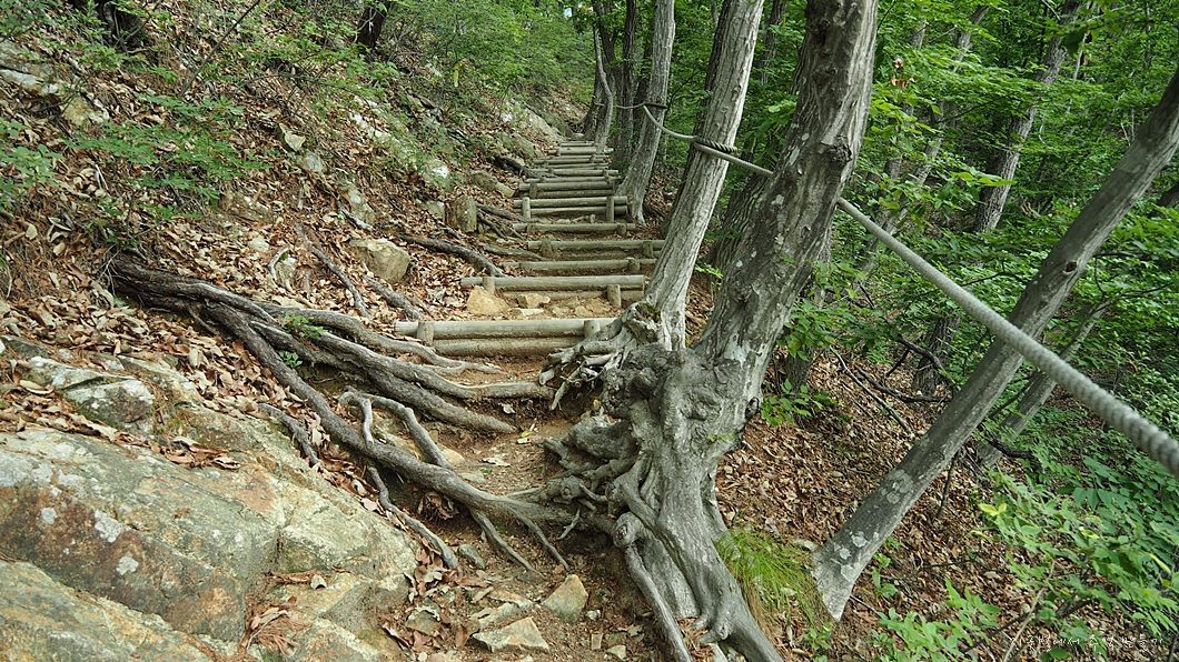 이전 등산로는 위험한 왼편, 오른편은 안전 등산로.