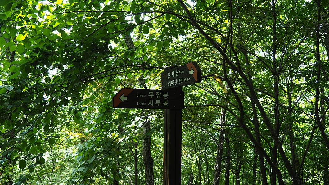 다시 정상으로 올랐다가 북쪽 사면 능선길을 타고 약 20여분 이동하면 만나는 시루봉 갈림길.