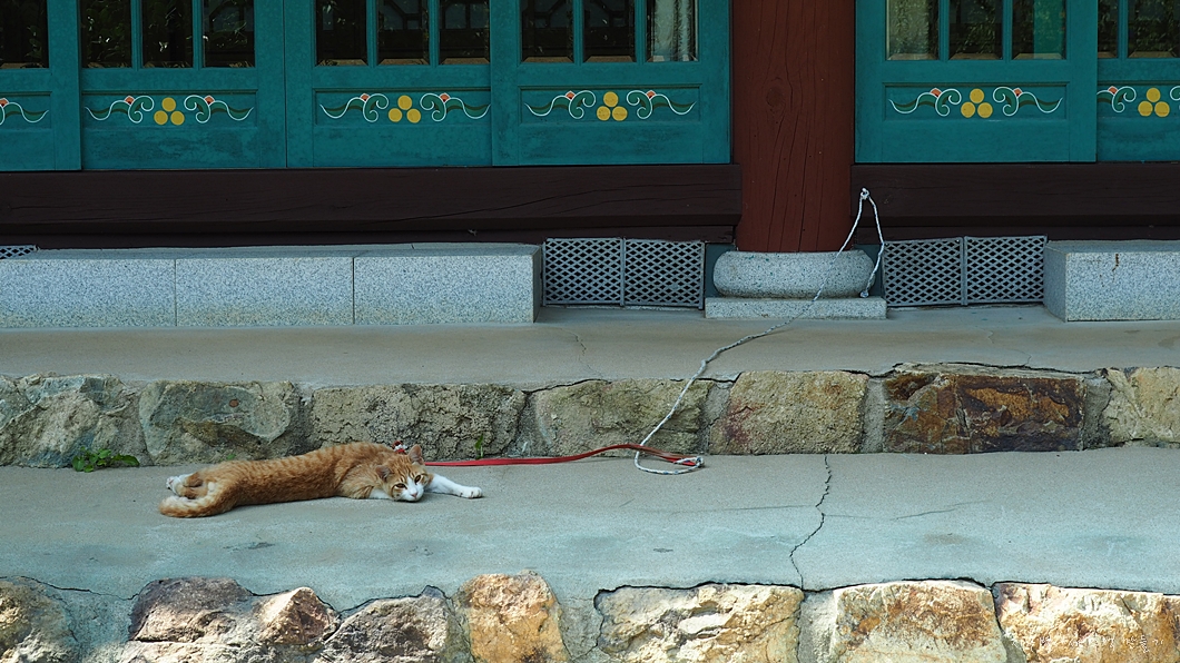 탈출이 불가능한 묘보살이 누가 오는가 싶어 잠시 쳐다보다가 휙 돌아 눕네요.
