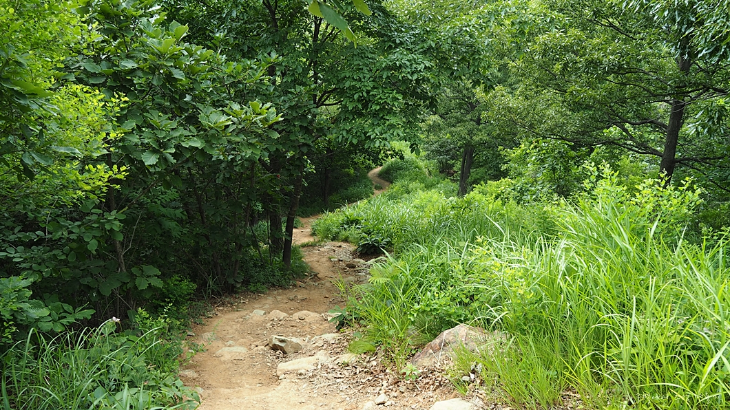 능선길의 등산로가 거의 방화선으로 되어 있어 햇살에 노출되는 구간이 많기도 하지만 오늘 기온 36˚ 폭염에 바람결도 없으니 오르막 올라갈 때는 숨이 막히네요.