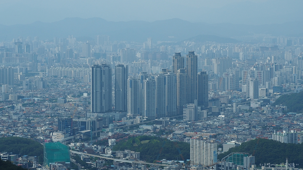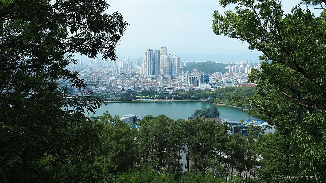 좌측 멀리 오늘 산행 마무리가 되는 수성못이 보입니다.