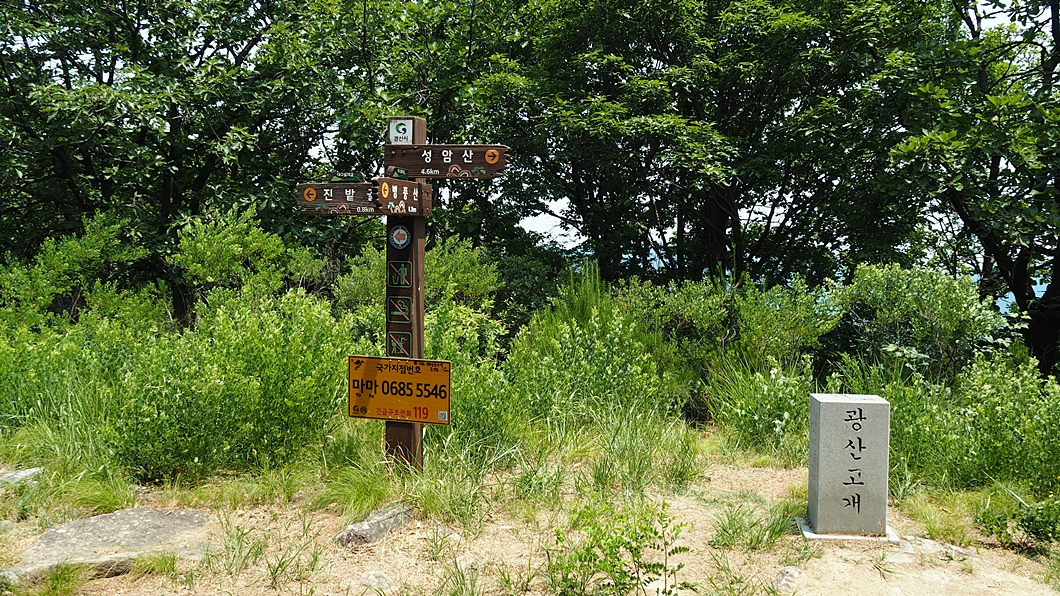제법 가파른 경사길을 40여분 오르면 성암산 정상.