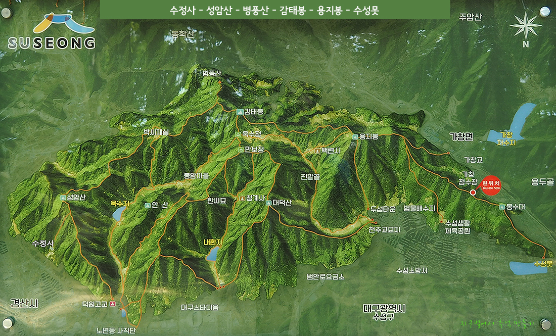 산행 코스 : 경산 현충원 - 수정사 - 성암산 - 병풍산 - 감태봉 - 용지봉 - 법이산 - 수성못