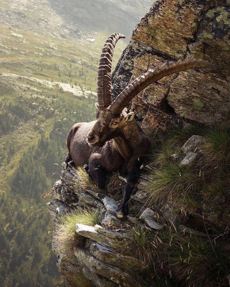 12. 거의 3000m 고도 절벽에서 휴식을 취하고 있는 알프스 염소