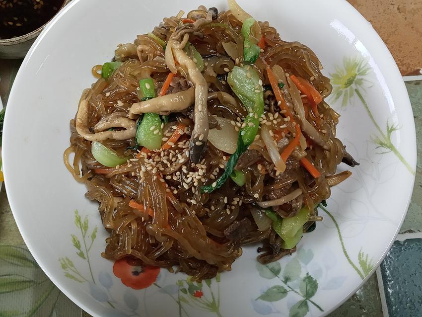 좋아하는 잡채를 만드는데 전 이장님께서 전화를 주셨습니다.