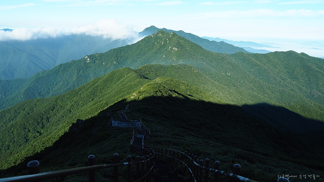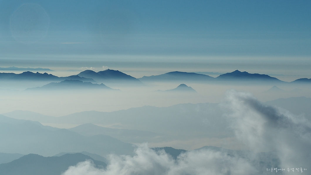 어제는 보이지 않던 지리주능선도 오늘은 보이구요.
