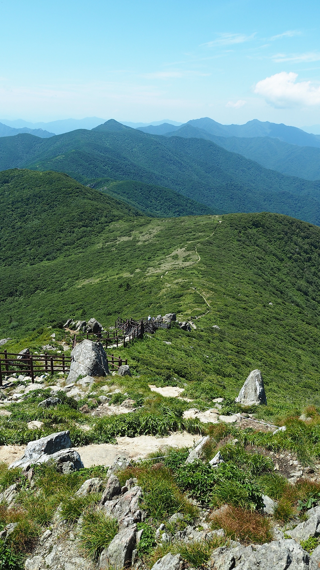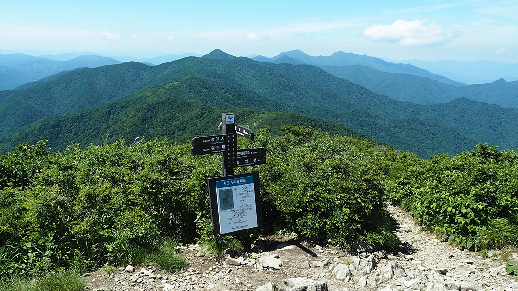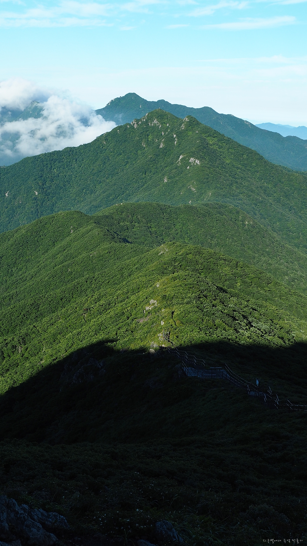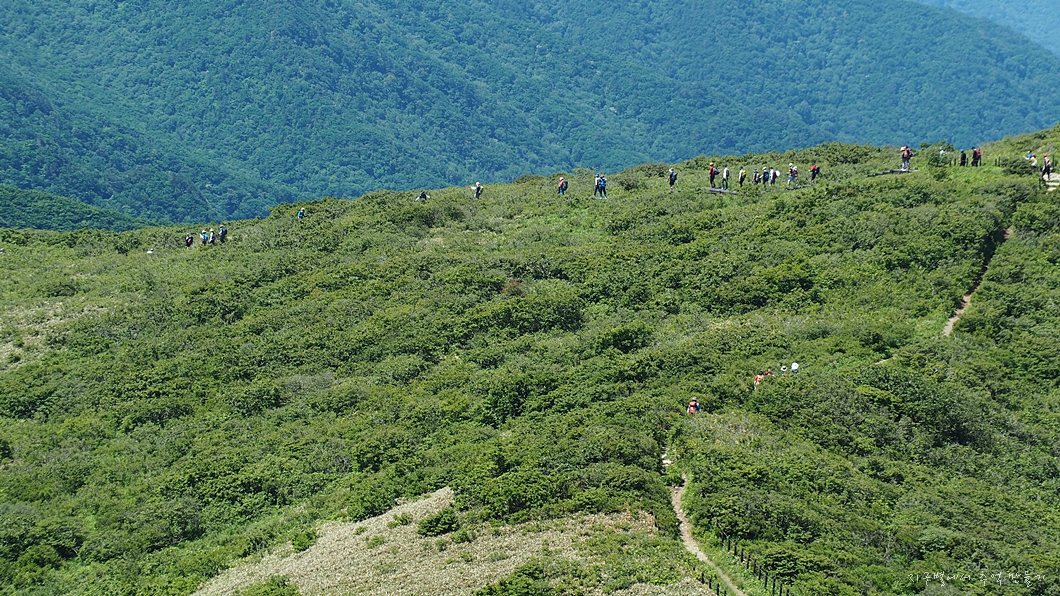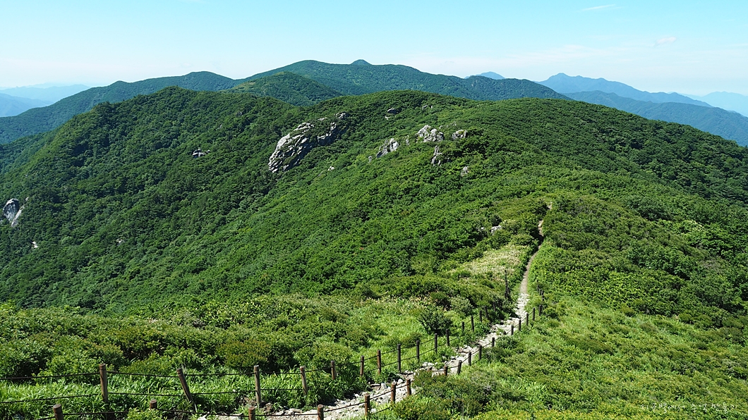 긴 능선을 한더위에 씩씩하게 잘 걸어왔네요.