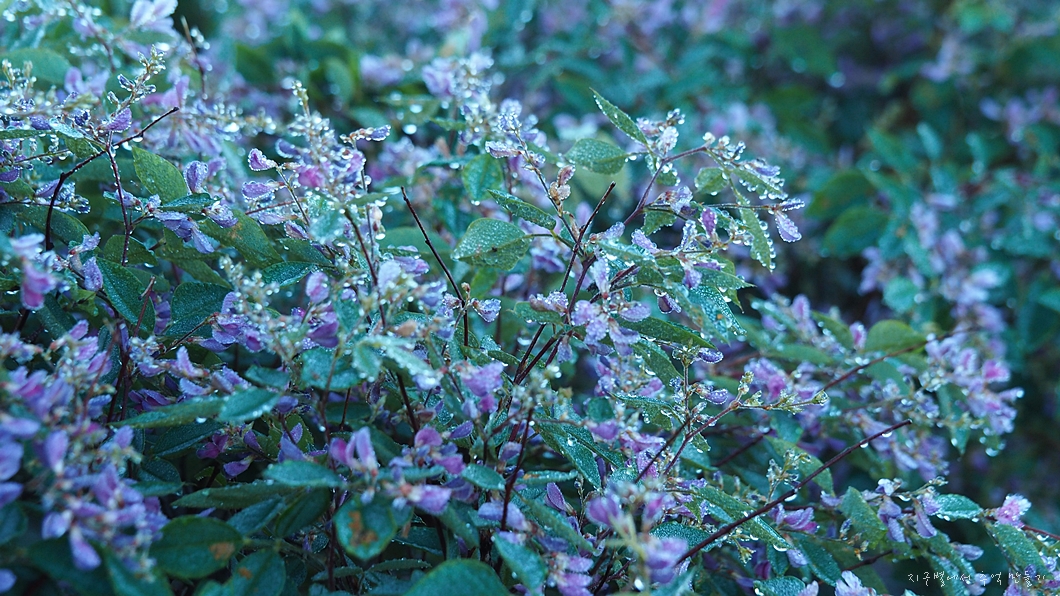 싸리꽃에 내린 이슬이 보석처럼 빛납니다.