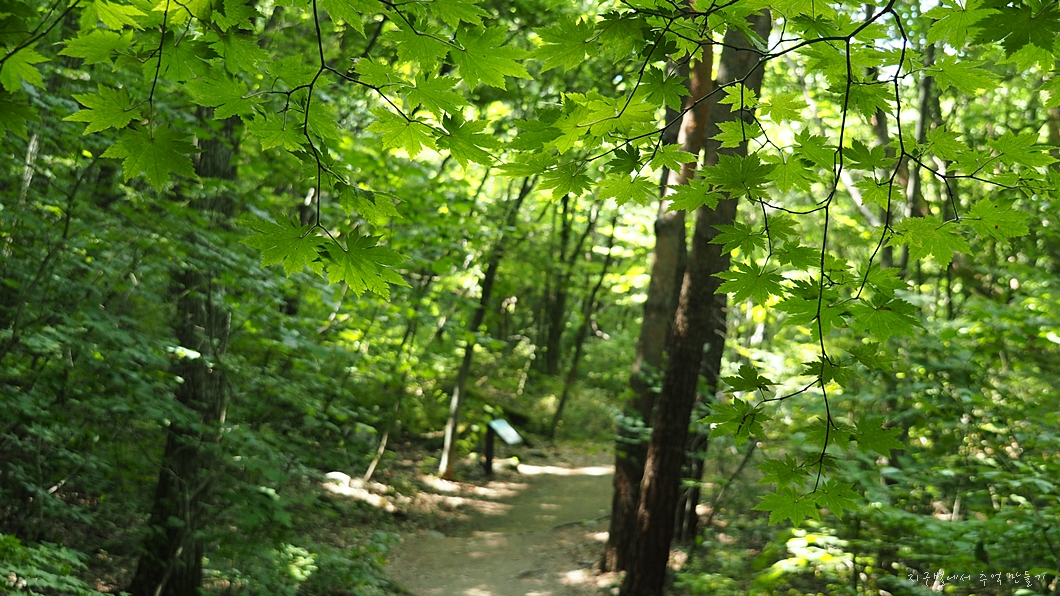 한참 내려와 슬로프 벗어나 숲길입니다.
