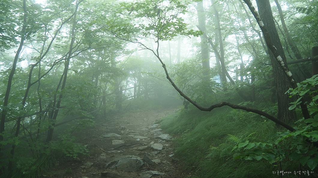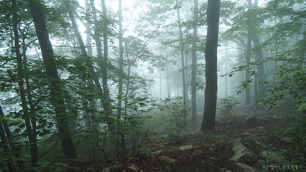 땀도 흘리지만 습도 가득한 숲길에 온통 안개가 묻어 있어 옷이고 뭐고 흠빡 젖어 버리네요.
