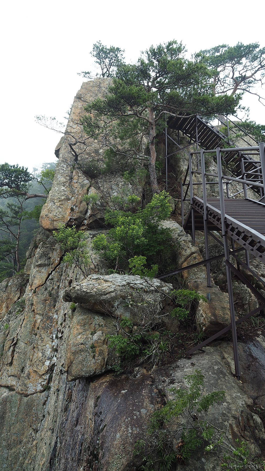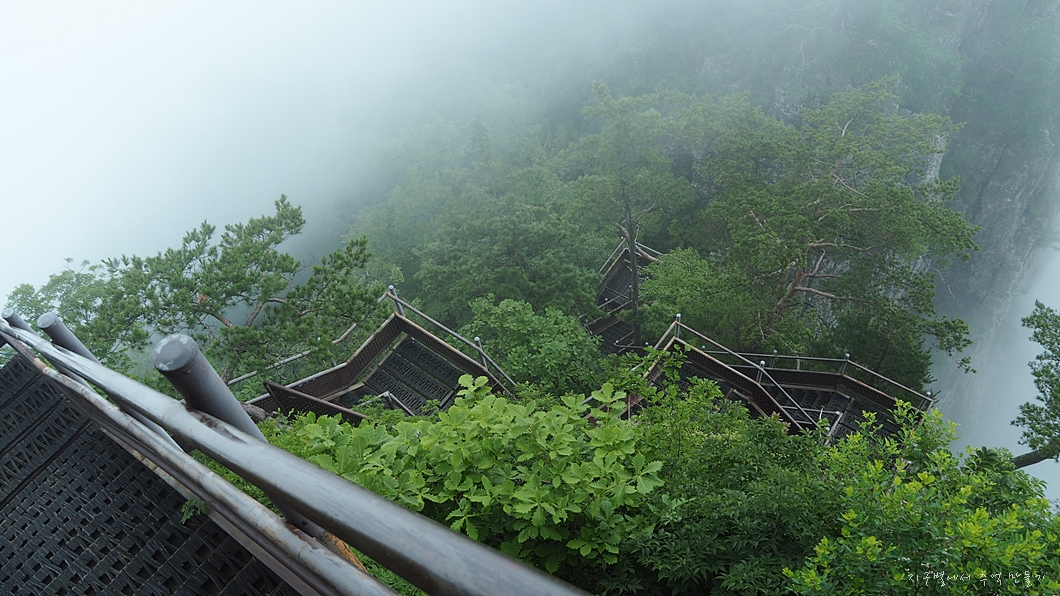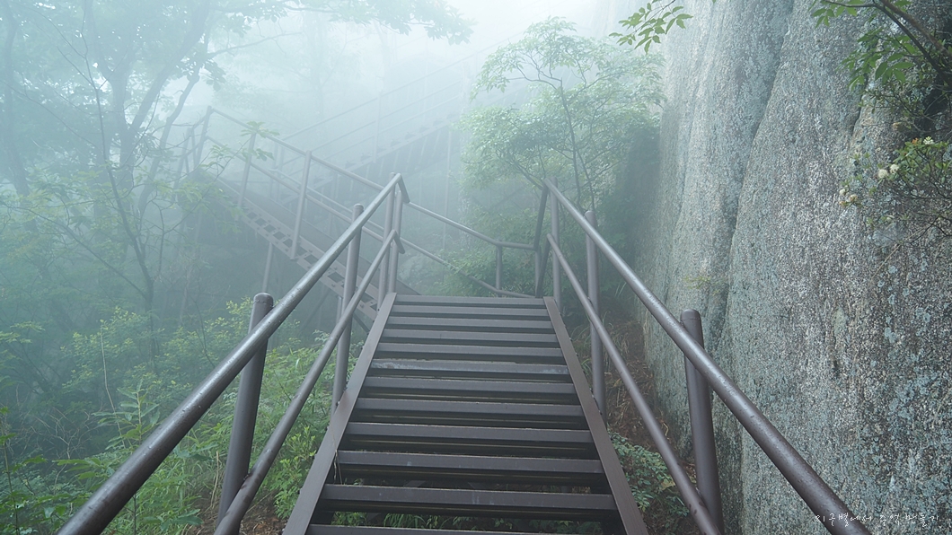 영봉에서 떨어져 내리는 아찔한 계단길