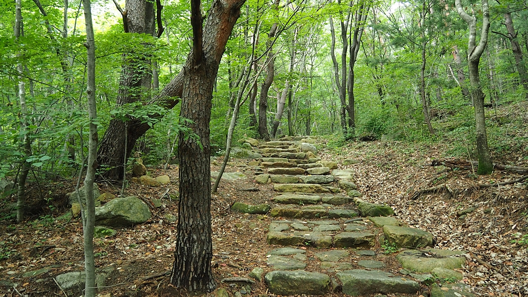 초반 1.5km는 맛뵈기 돌계단길로 적당한 오르막길을 느긋하게 오르면 되는 코스입니다.