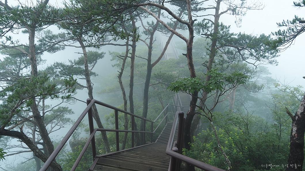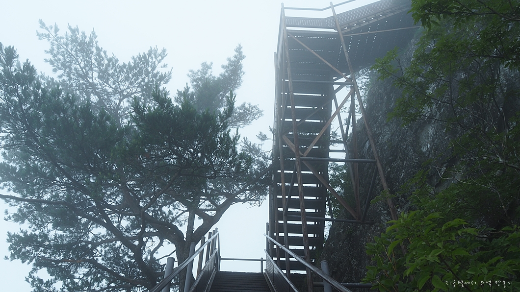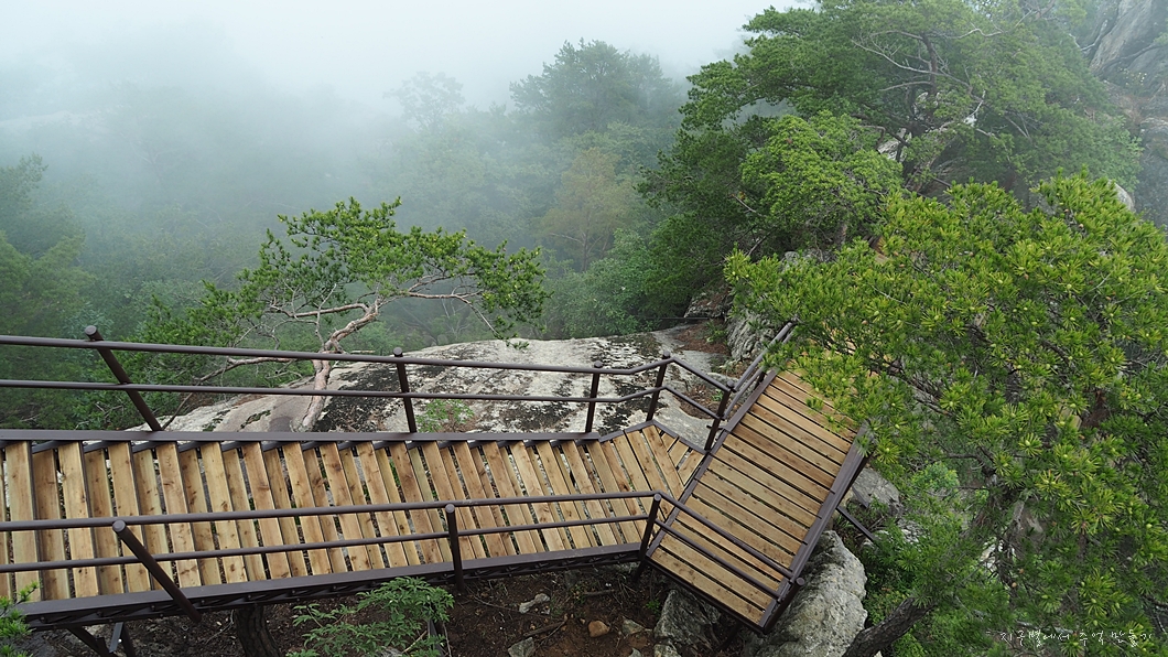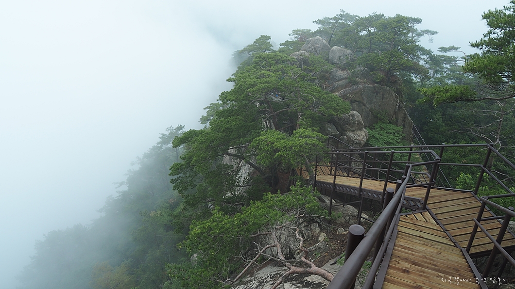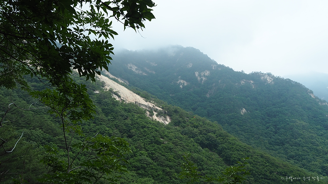 흐린 날씨는 예보를 통해 예상을 했지만 산자락에 안개가 가득하여 산행 내내 조망은 볼 수 없었답니다.