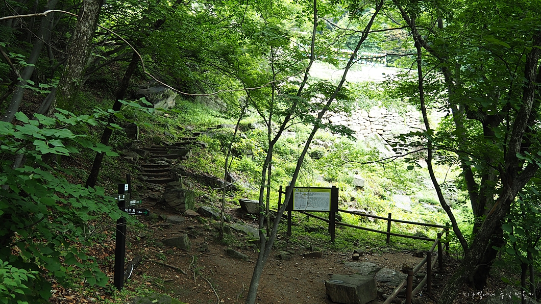 들머리는 마애불이 있는 덕주사, 이 구간으로 오르면 우리나라 산길에 놓인 계단 종류는 모조리 섭렵하게 되는, 계단길 종합세트를 경험하게 된답니다. 계단 끝판왕이구요.
