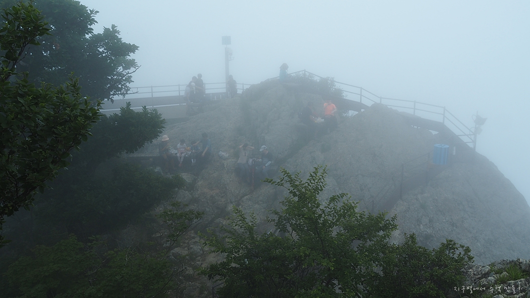 일단 저곳에 먼저 도착하여 안개가 조금이라도 걷히길 가다려 봅니다.