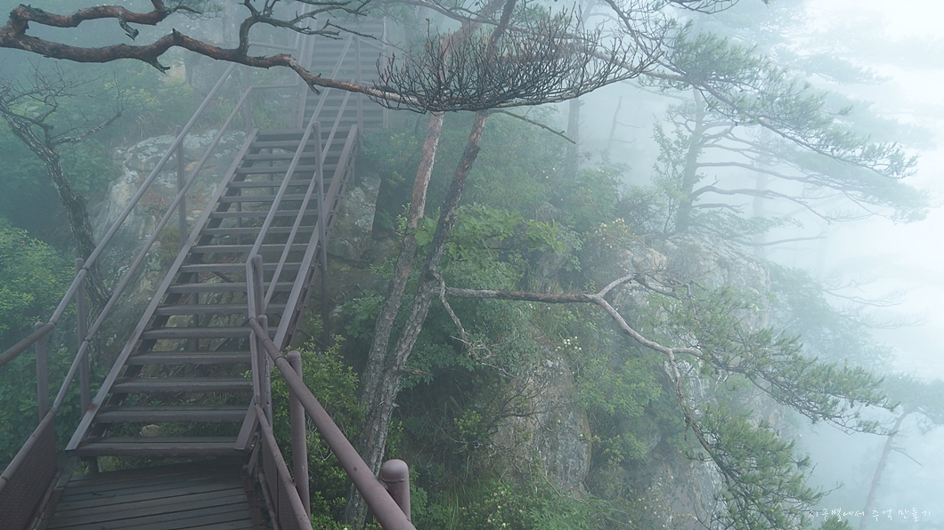 덥고 습하고 축축하고 안개 가득한 날 오른 월악산.