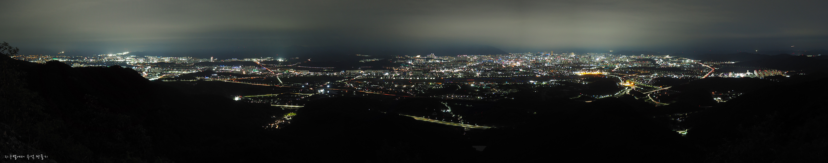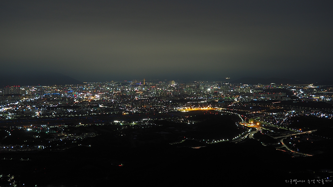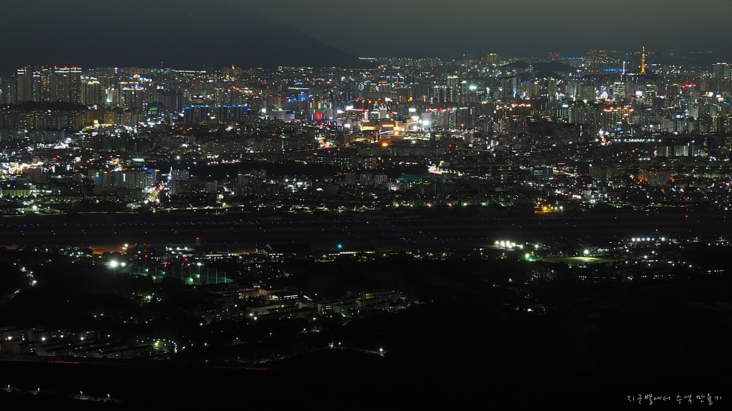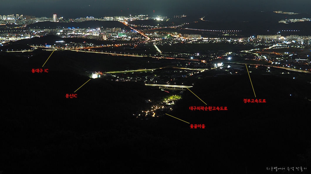 좌측의 밝은 불빛은 대구공항이고 중앙의 밝은 불빛은 도동 IC입니다.