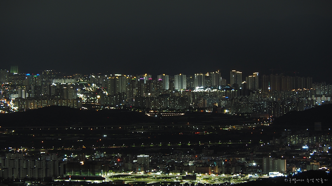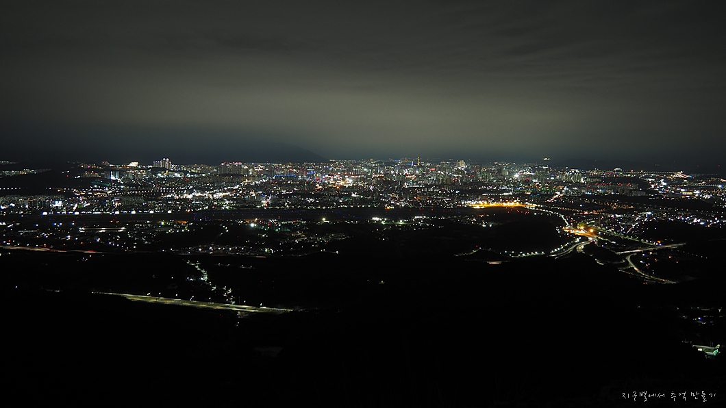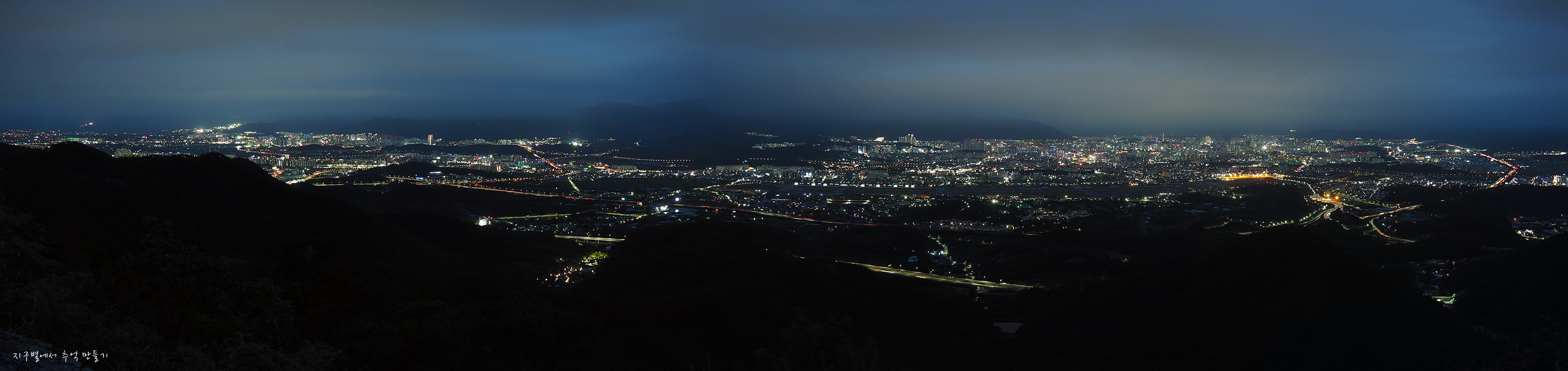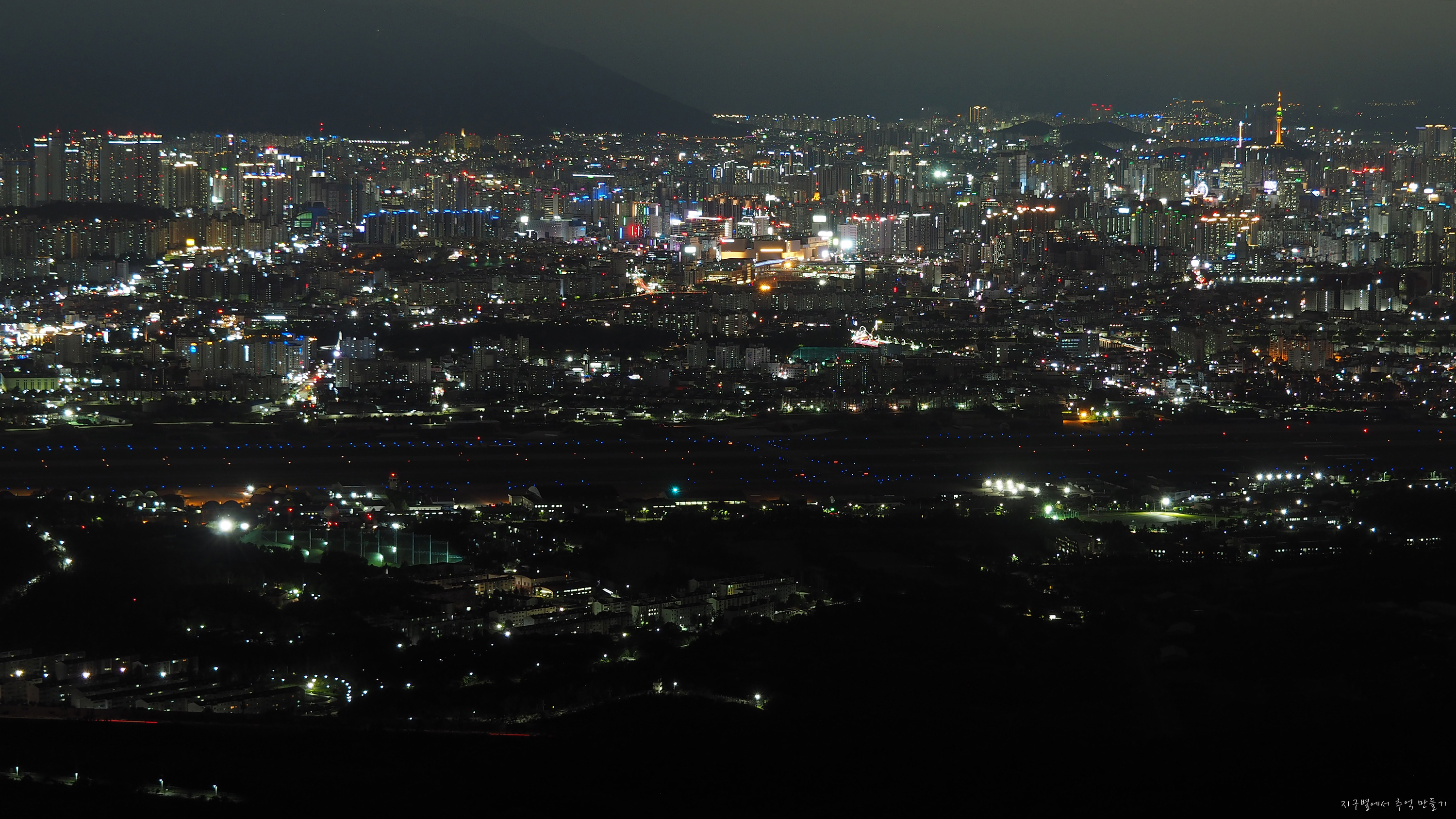 좌측의 밝은 불빛은 대구공항이고 중앙의 밝은 불빛은 도동 IC입니다.