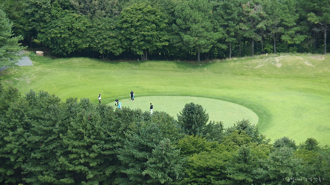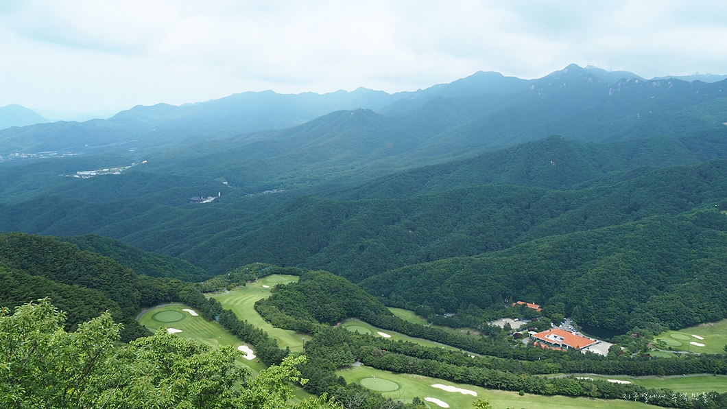 노적봉 가까워지면 좌측으로 팔공산 CC가 계속 내려다 보입니다.