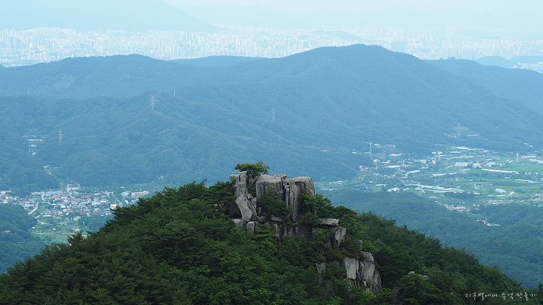 습기가 있는 날씨라 뒷편 대구 시가지가 말갛게 보이지 않습니다.