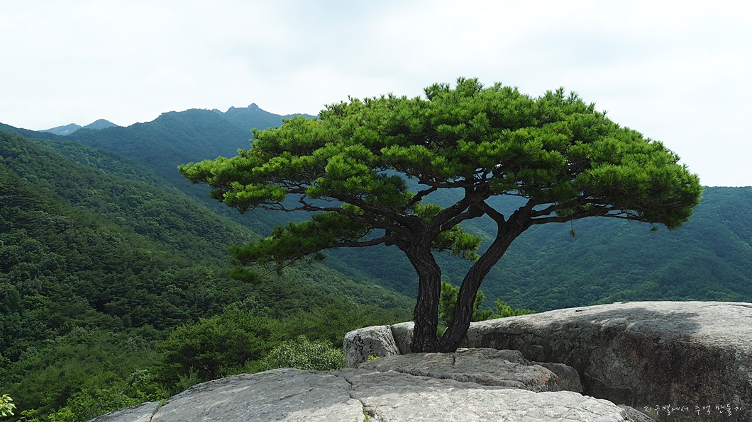노적봉 정상의 절벽에도 명품 소나무가 한그루 있는데 사진에서 우산처럼 보여 지네요.