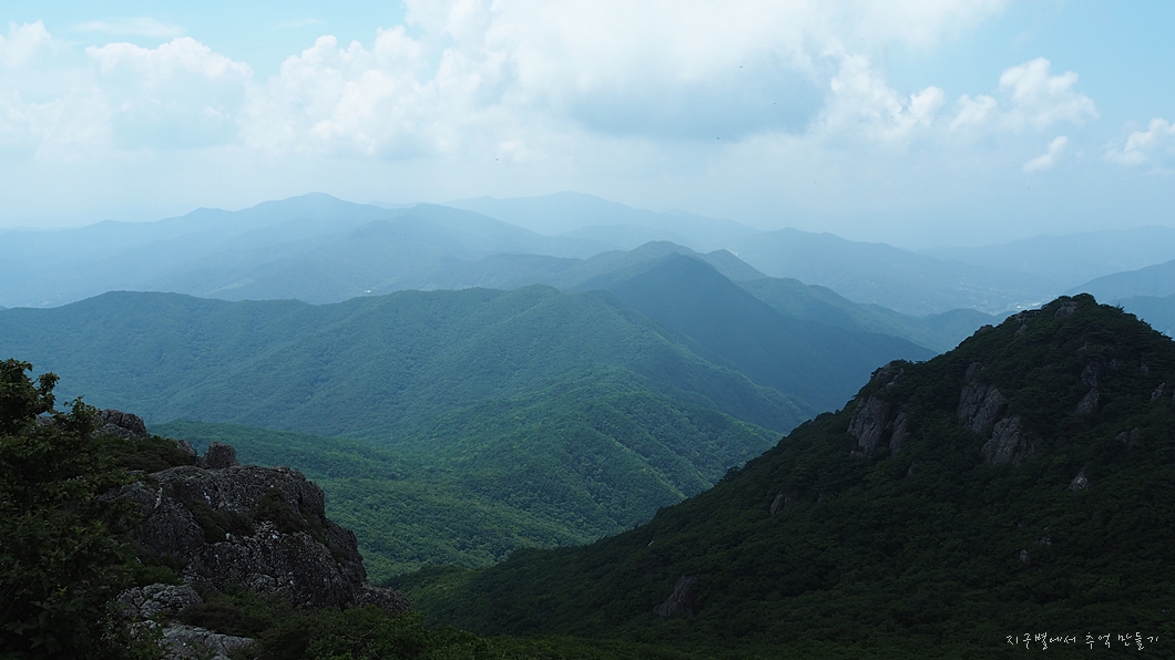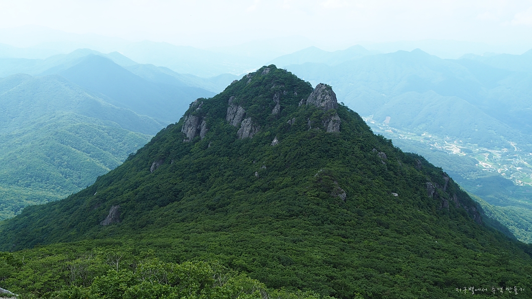 건너편 동성봉으로 올라가는 초록빛 능선이 너무 예쁩니다.