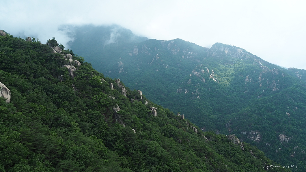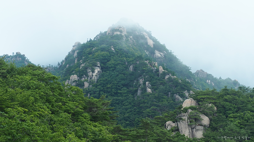 전날 하루 종일 비가 내려 만물상 운해가 멋질 것 같다는 기대를 하고 갔는데 운해는 별로 없고 습도가 가득하여 땀을 많이 흘린 하루였답니다.