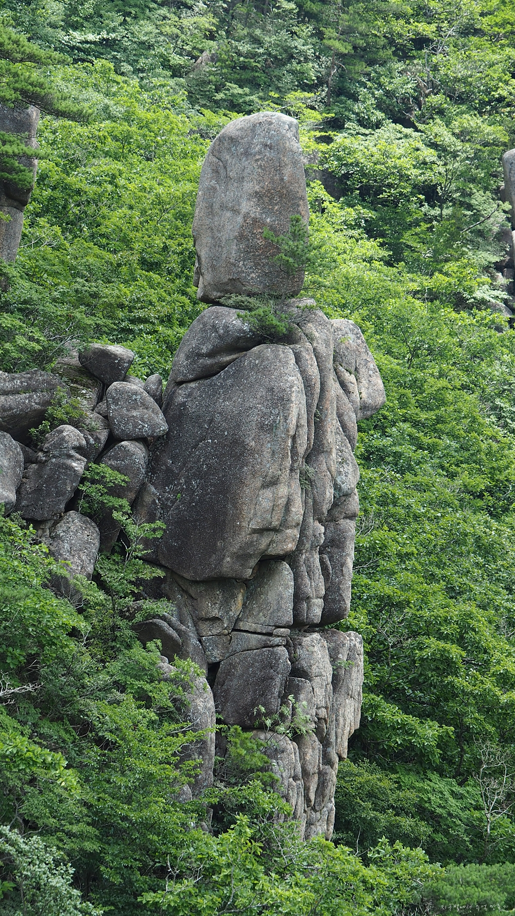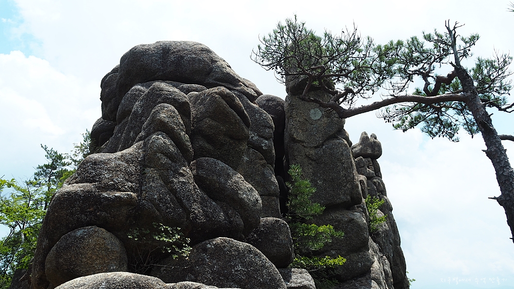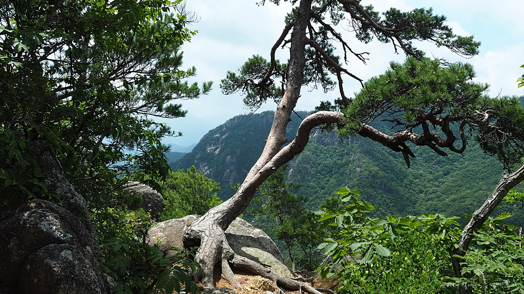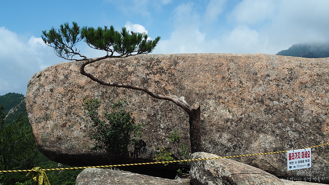 절벽에 자라고 있는 노송과 멋진 암봉.