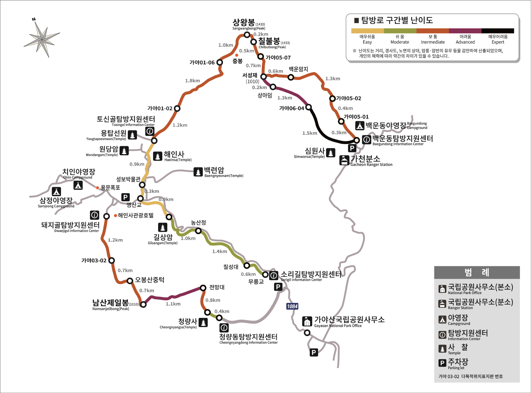 가야산 코스별 거리와 난이도 : 이곳