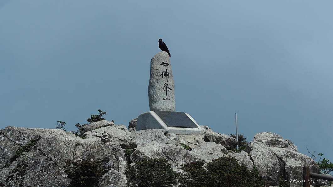 다시 칠볼봉으로 되돌아 오니 그 새 까마귀가 정상을 차지하고 있습니다.