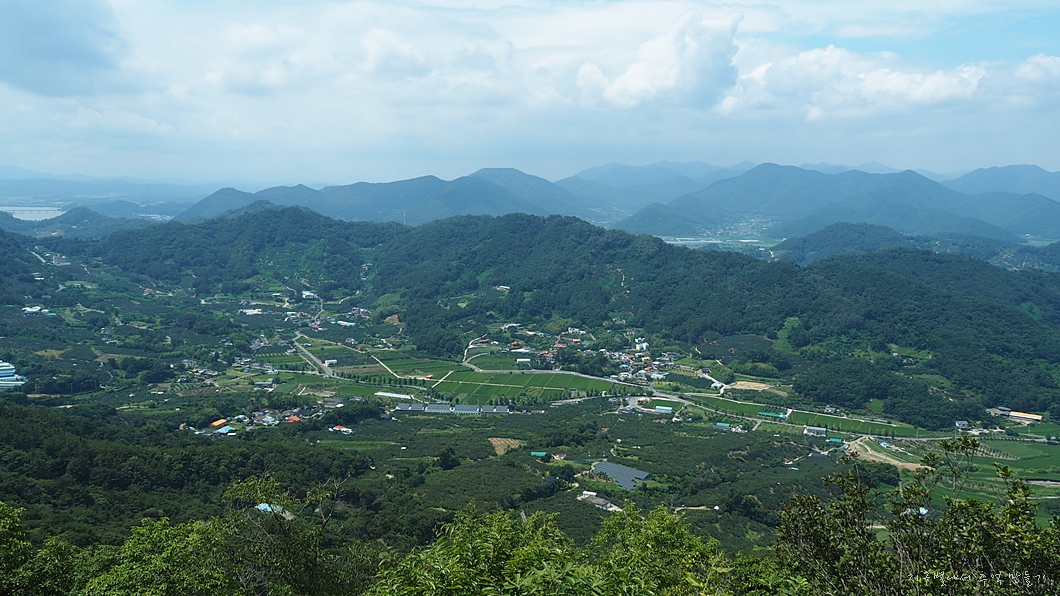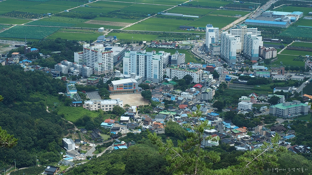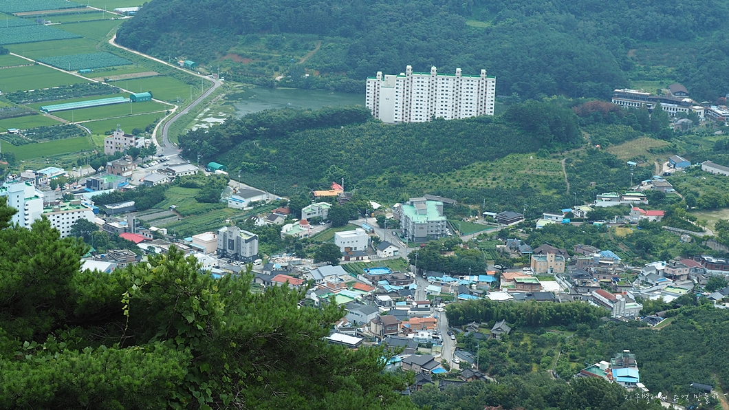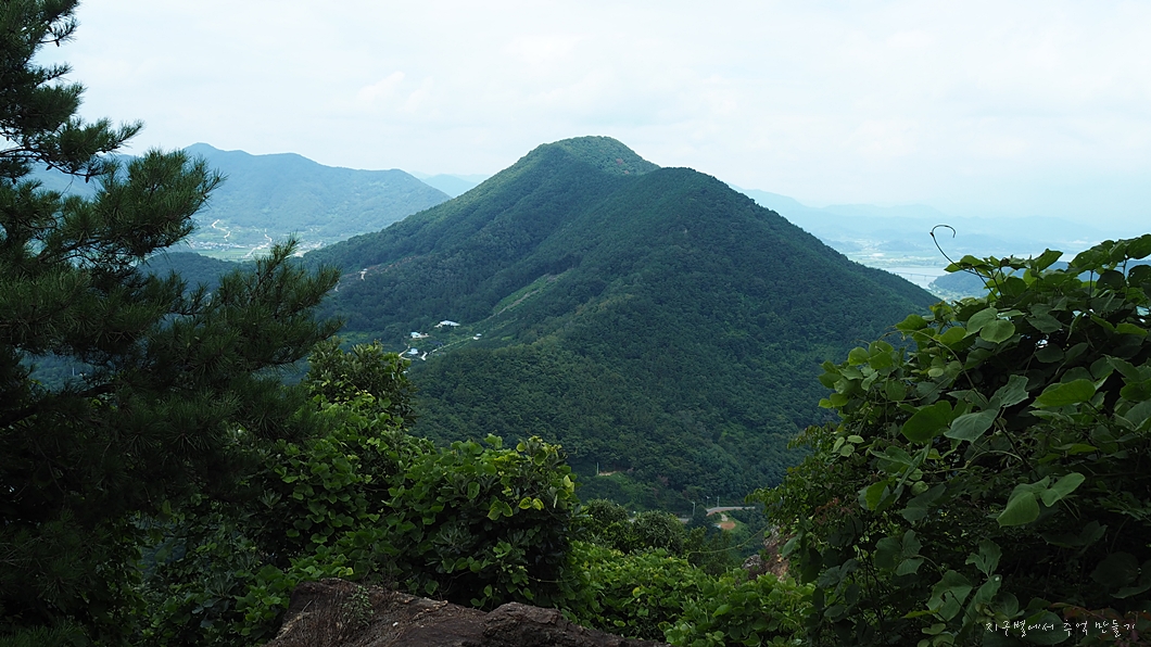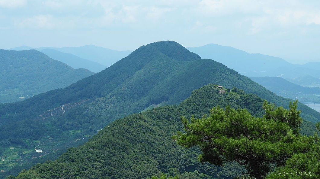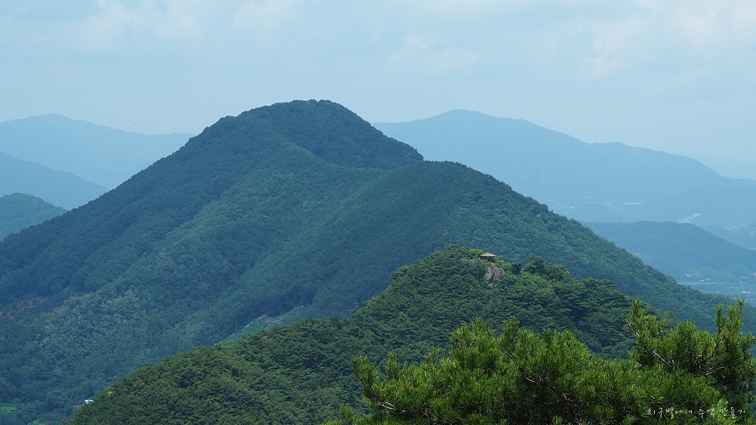 우측 건너편의 옥녀봉이 보이고 그 뒤로 멀리 작대산 천주산이 조망 됩니다.