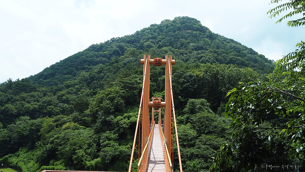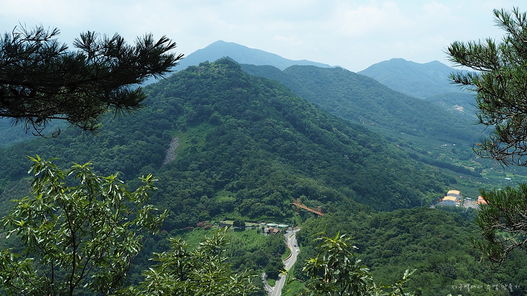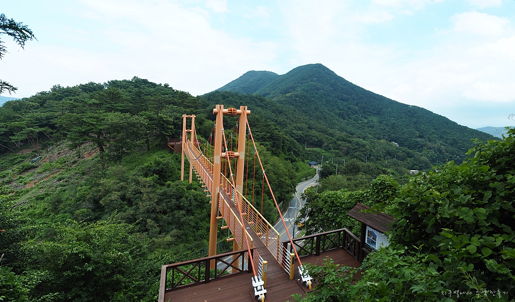 중간에 산을 횡단하는 도로 위에 놓여진 마금산 구름다리가 보입니다.