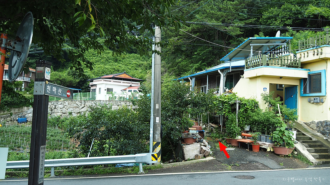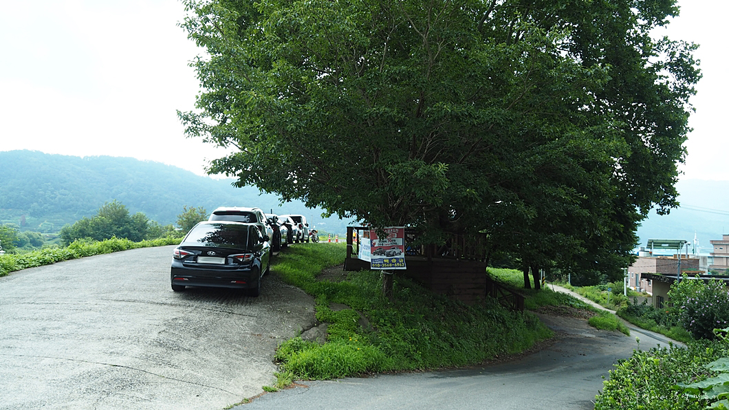 둑에 주차를 하고 도로를 건너 맞은 편 화살표 방향으로 올라 가면 됩니다.