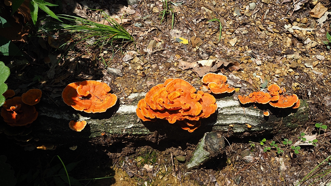 전날 잔뜩 내린 비로 등산로 복판에 영지가 돋아 났네요.