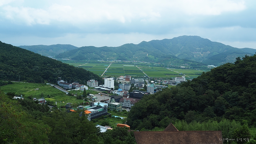 왼편으로 마금산 온천지구가 내려다 보입니다.