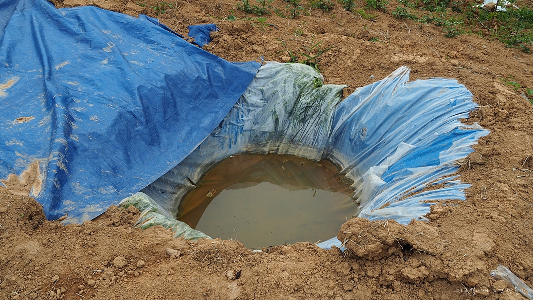 몇 시간 걸려 파 둔 저수지에도 물이 고였다.