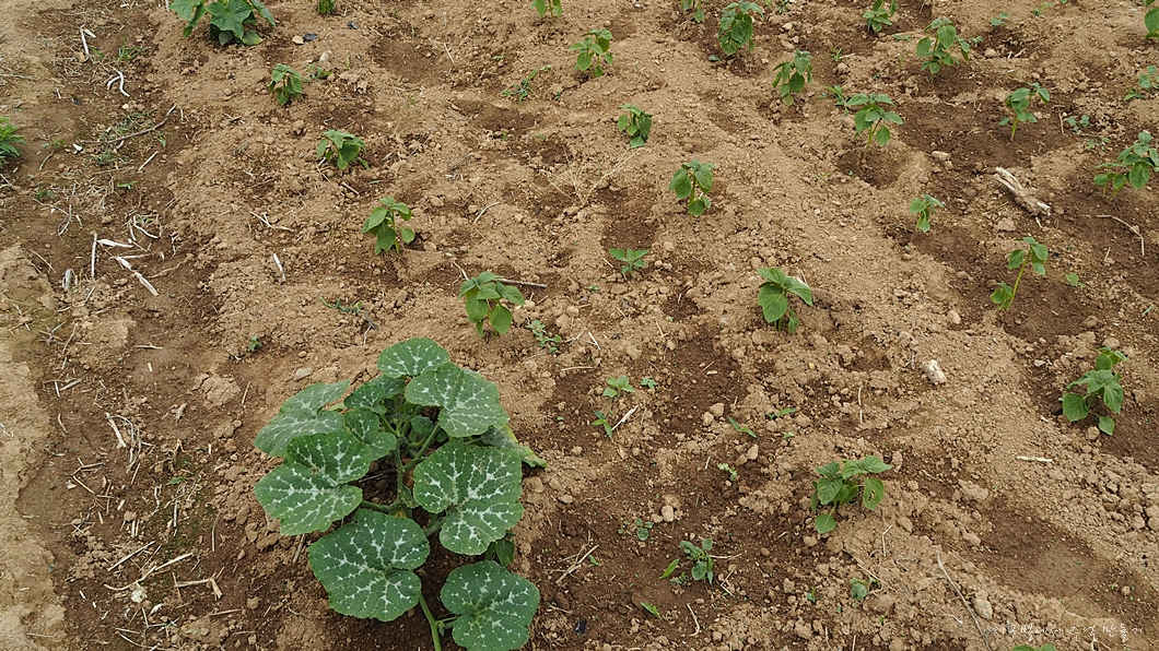 한쪽 옆으로 호박을 25 구뎅이 심었다.