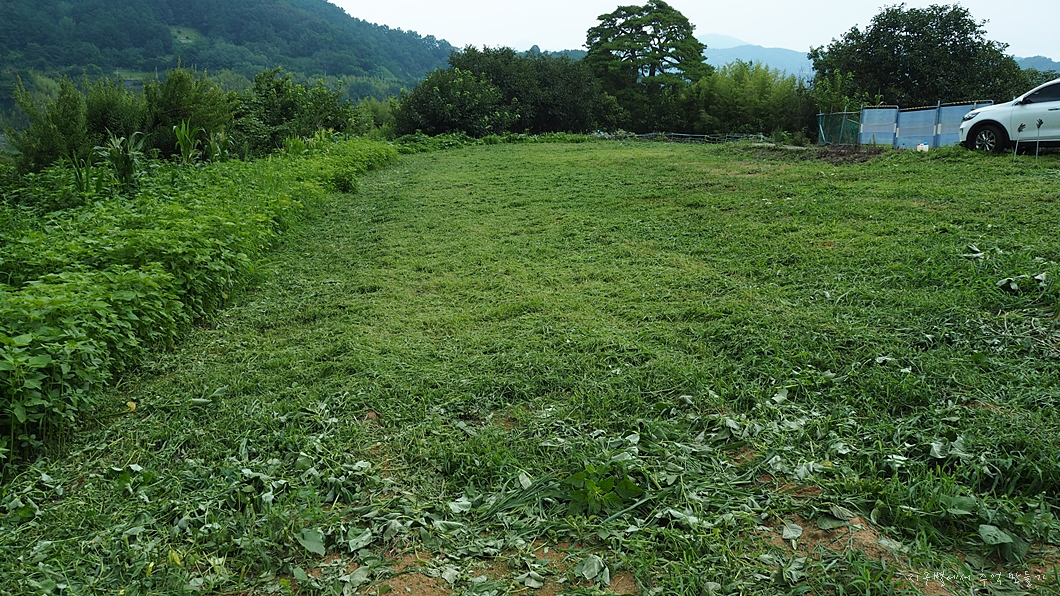 예초기로 널찍한 밭 잡초를 싹 밀고 나니 정말 개운하다.