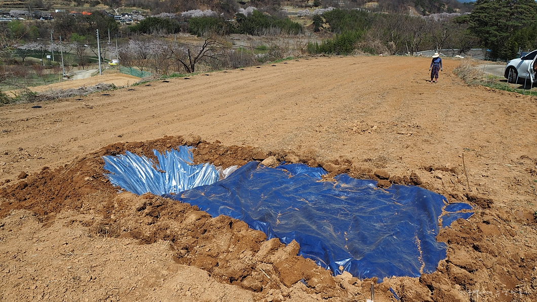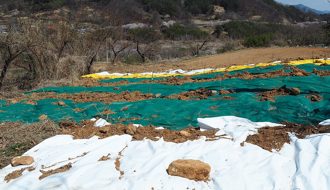할 수 없이 거금을 들여 골을 타고 시커믄 비닐을 사다가 덮었다.