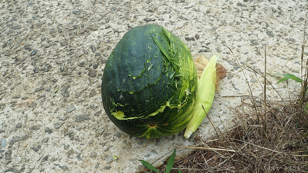 그나마 서너 개 달려 있는 호박 중 가장 잘 생긴 넘을 예초기로 생채기를 내어 버렸다.